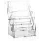 - Deze tafelbrochurehouder biedt plaats aan flyers en brochures in A4-formaat (210 mm x 297 mm), waardoor uw promotionele materialen altijd binnen handbereik zijn.